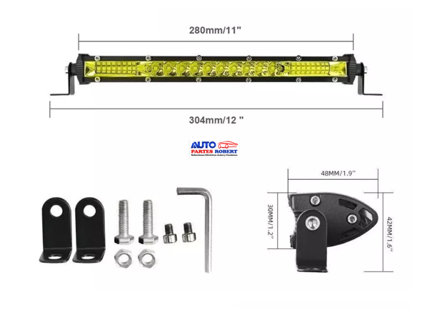 BARRA LED 12 COLOR AMARILLA EXCELENTE ILUMINACION TODO TERRENO 4X4 ANTINIEBLA 78 WATS 12 A 24 VOLTS 3500 KELVIN