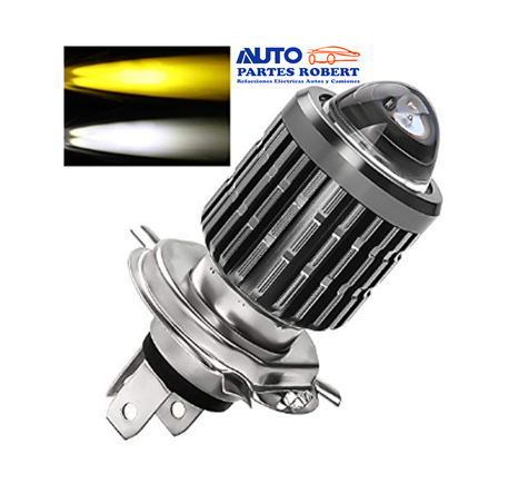 FOCO LED H4 DUAL BLANCO EN LUZ BAJA Y AMARILLO EN LUZ ALTA CON LUPA EXCELENTE ILUMINACION
