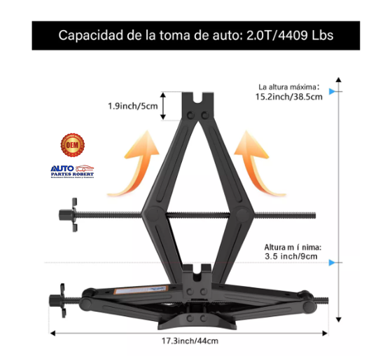 GATO PUNTO DE APOYO UNIVERSAL CAPACIDAD 1.5 TONELADAS CON MANIVELA REFORZADO PARA AUTOS Y CAMIONETAS