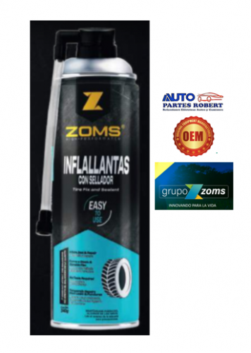 INFLALLANTAS ZOMS CON SELLADOR 340 GRAMOS AYUDA A INFLAR Y SELLAR AL INSTANTE SU LLANTA SIN NECESIDAD DE DESMONTAR