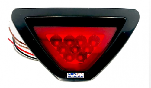 LUZ FRENO FORMULA 1 TRIANGULO CON LED COLOR ROJO CON ARILLO GEL FIJO E INTERMITENTES Y DIRECCIONALES EXCELENTE PARA AVISO DE FRENO DE EMERGENCIA IDEAL PARA VEHICULOS Y MOTOCICLETAS