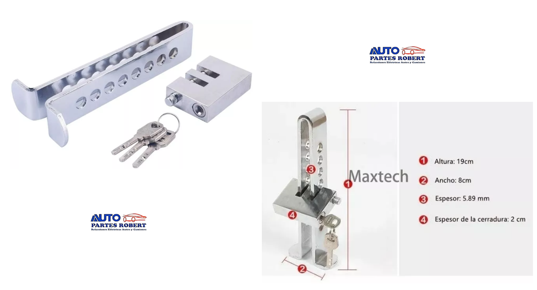 SEGURO ANTIRROBO PARA PEDAL UNIVERSAL CON CANDADO CROMADO