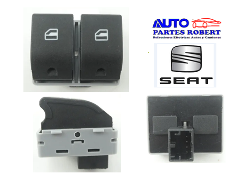 SWITCH ELEVADOR VIDRIO IBIZA 2003-2009 SEAT CONTROL MAESTRO 2 BOTONES LADO IZQUIERDO DELANTERO CONECTOR NEGRO 4 TERMINALES