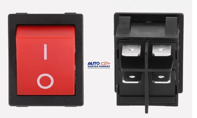 SWITCH TECLA ROJO 4 TERMINALES TIPO MICROBUS 30 AMPERES MEDIDAS 25X25X25mm