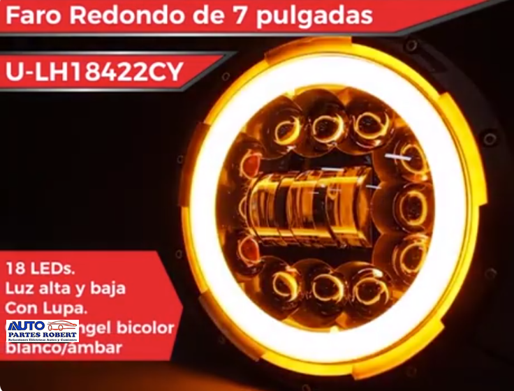 UNIDAD LED REDONDA 22 LED BICOLOR BLANCO Y AMBAR CON LUPAS 1 PIEZA