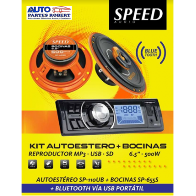ESTEREO SPEDD MP3 USB TARJETA SDI 2 BOCINAS 6.5 500W CON USB EXTRAIBLE